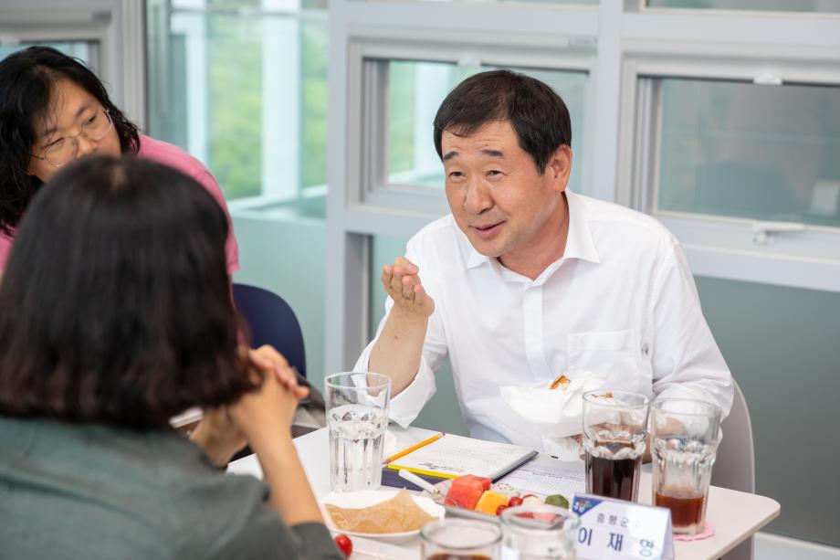 이재영 증평군수는 13일 청소년문화의 집에서 작은도서관 관장 및 돌봄활동가 등 9명이 참석한 가운데 브라운백 미팅을 주재하였다.