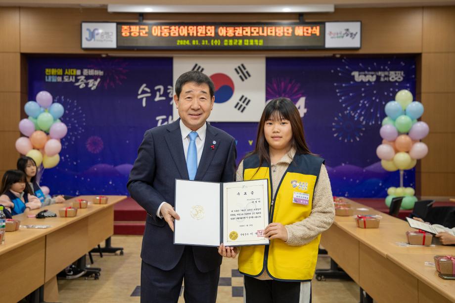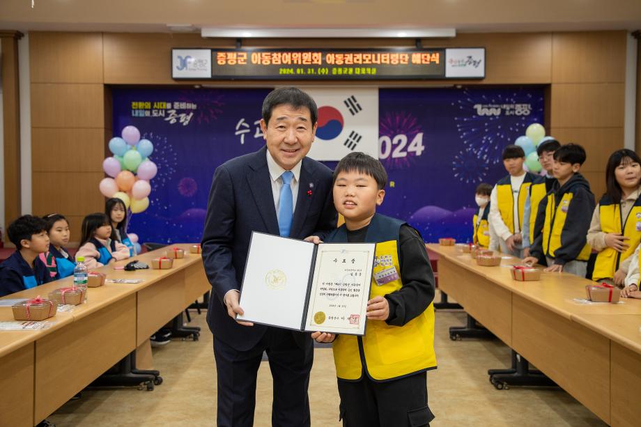충북 증평군은 31일 군청 대회의실에서 증평군 아동참여위원회·아동권리모니터링단 정책제안 및 해단식을 개최했다.