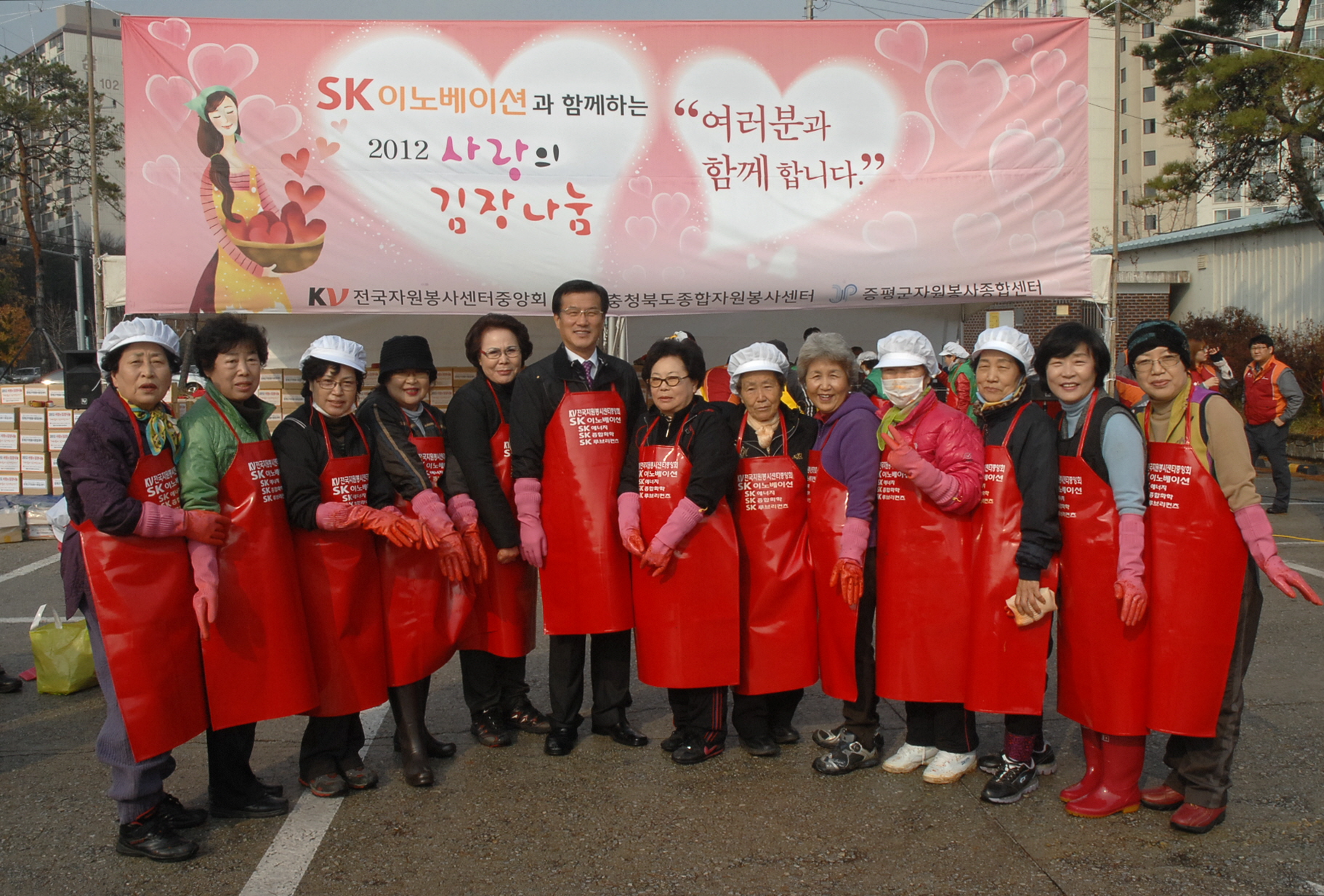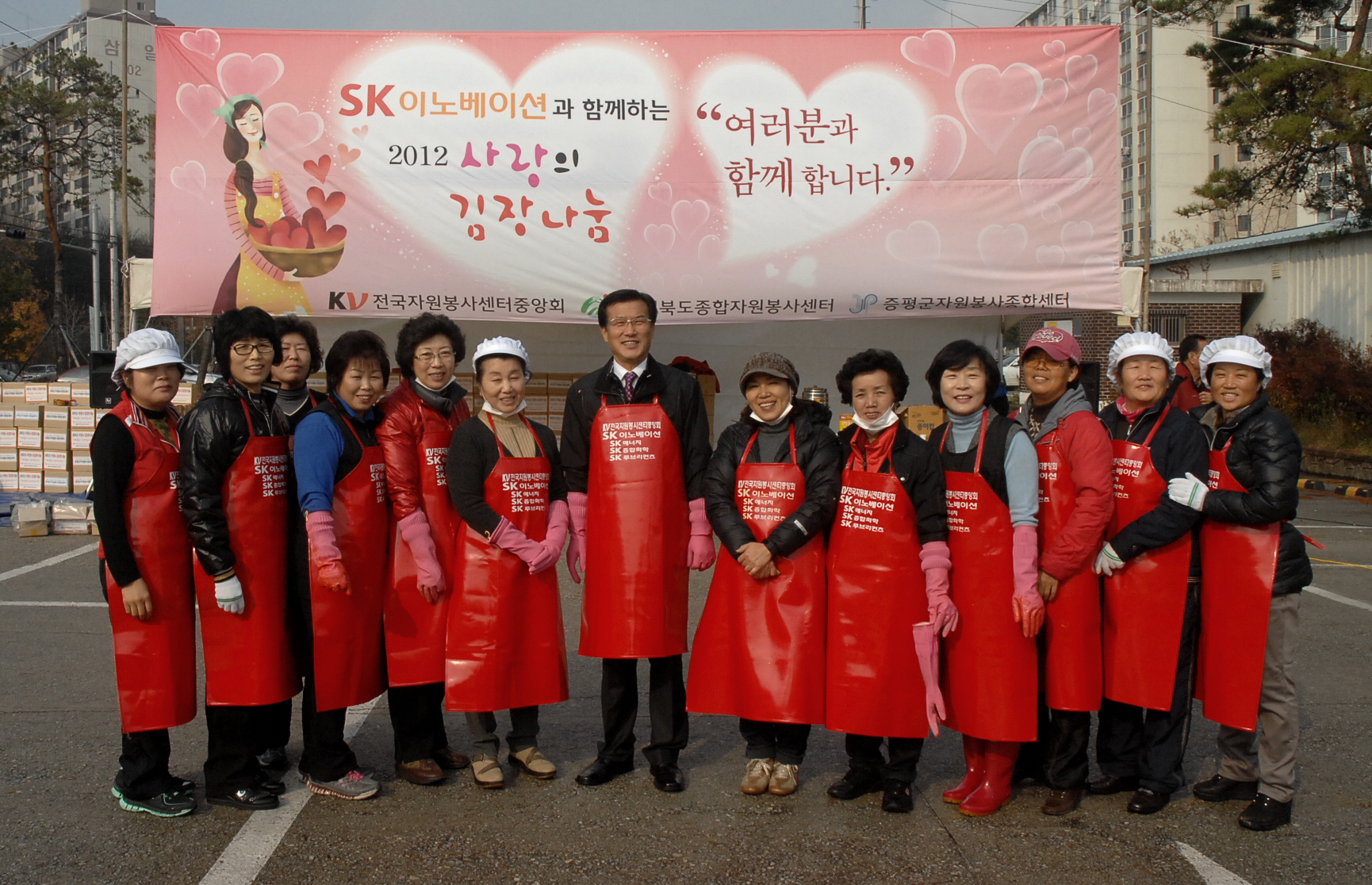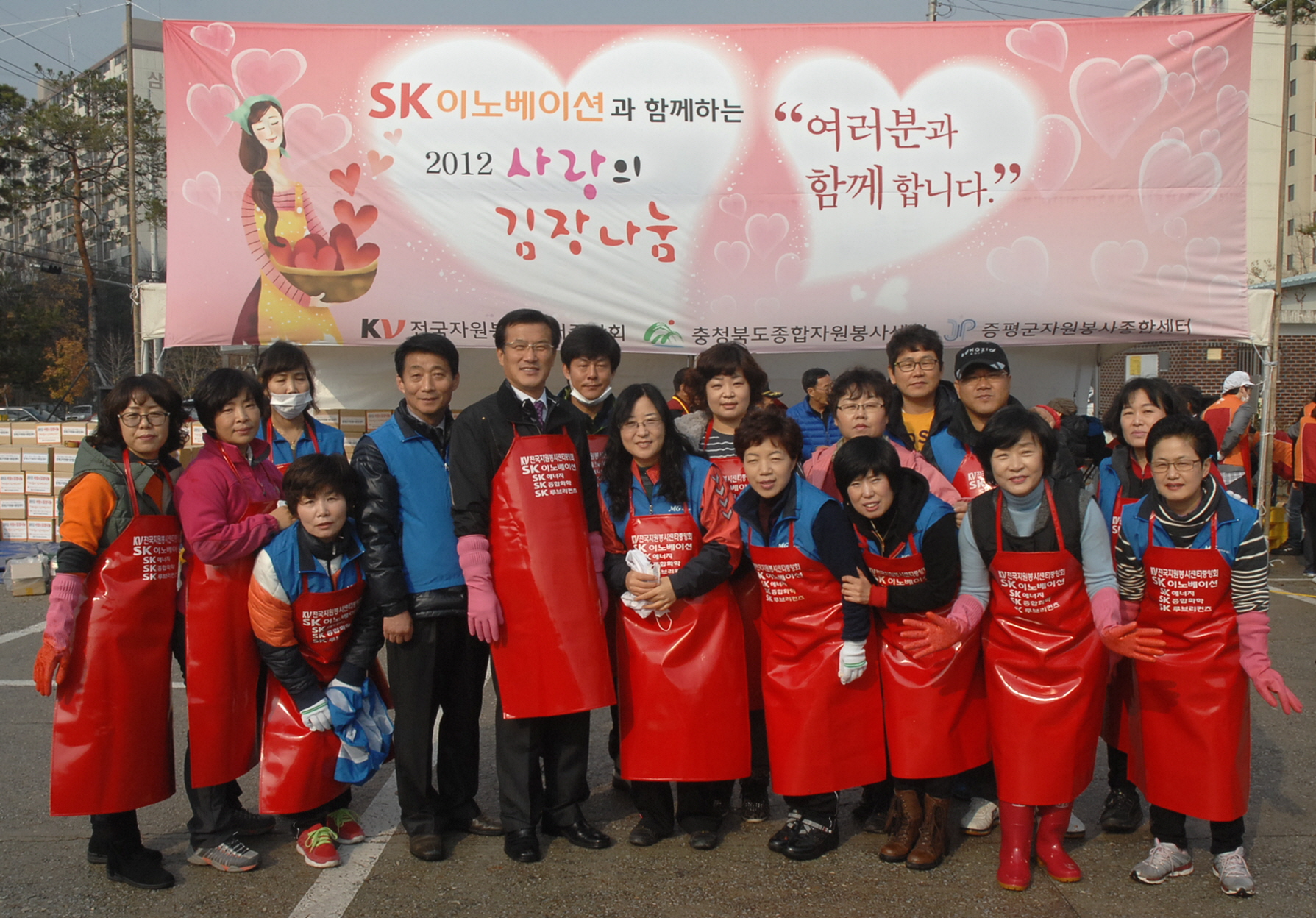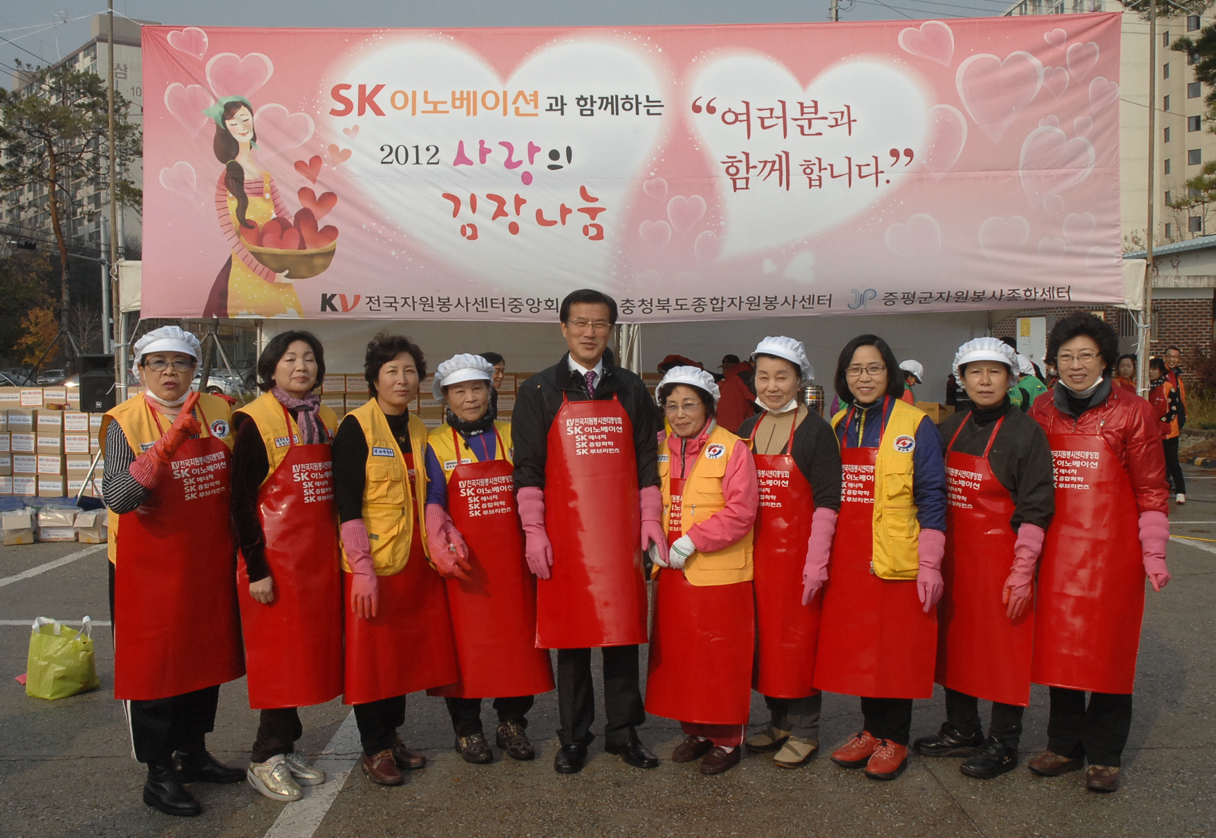 증평군 자원봉사종합센터(센터장 신재영)와 SK이노베이션은 19일 오전 9시부터 증평문화센터 야외광장에서 ‘2012 사랑의 김장나누기 행사’를 실시했다. [보도자료실 참조]