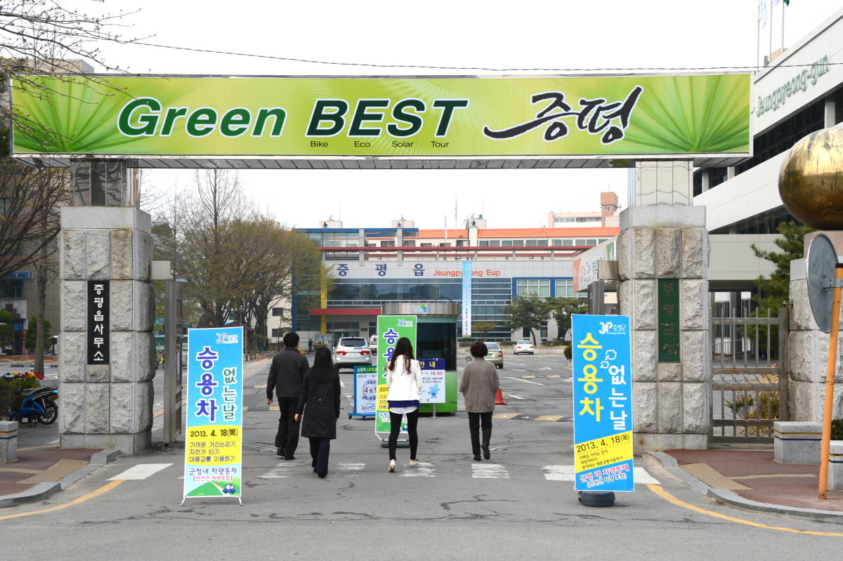 증평군은 18일 제5회 기후변화 주간을 맞아 ‘Me First! 녹색 출근!군청 내 차 없는 날!’ 행사를 추진했다. [보도자료실 참조]