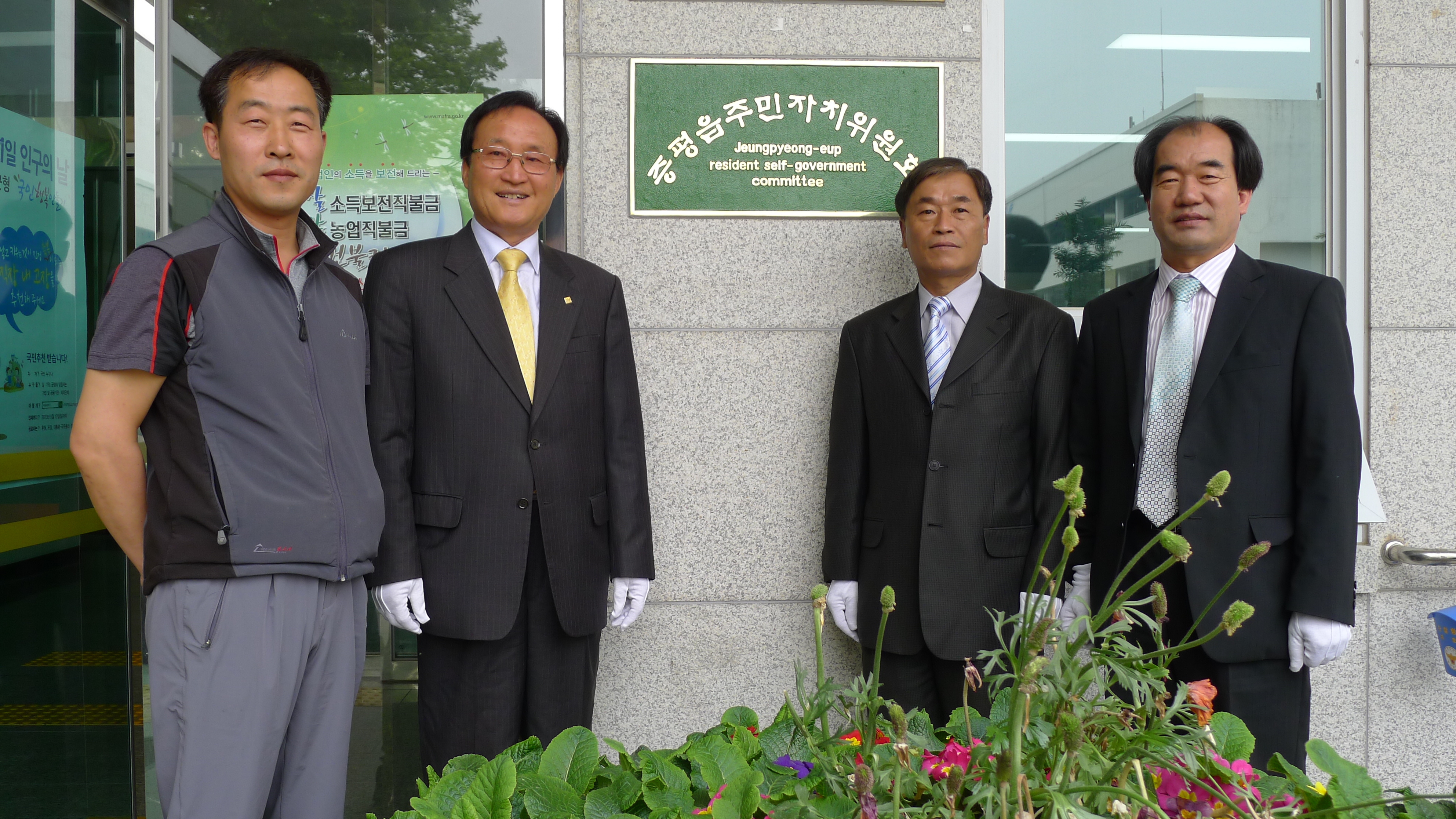 증평읍 주민자치위원회가 22일 증평읍사무소 현관앞에서 자치위원회 현판식을 가졌다. [증평포토포커스 참조]