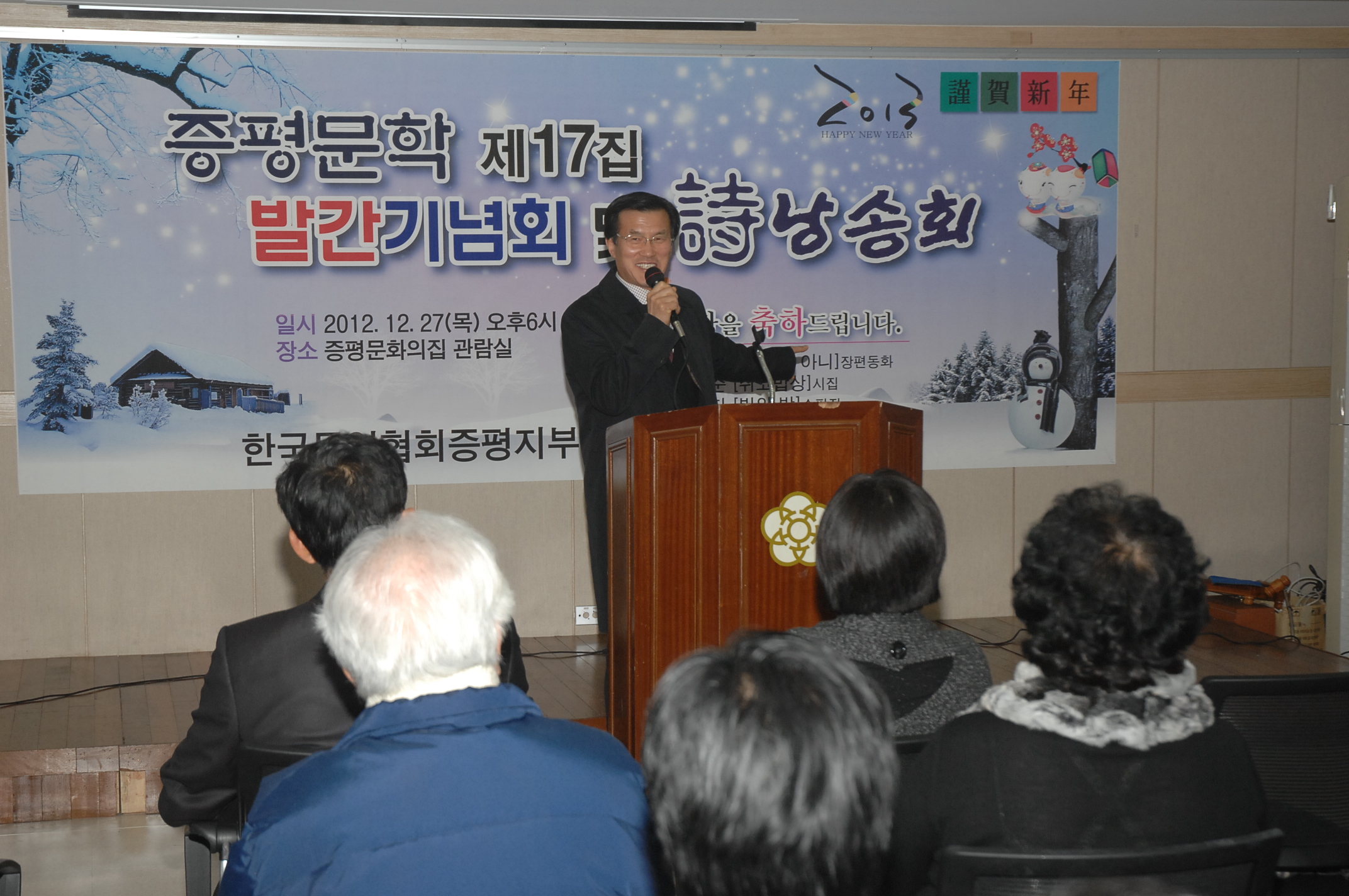 증평문인지부(지부장 나영순)는 27일 오후 6시 증평문화센터 2층 관람실에서 홍성열군수, 박석규 군의장, 최건성 문화원장을 비롯한 기관단체장과 회원이 참석한 가운데 증평문학 제17집 발간기념호 및 시 낭송회를 가졌다