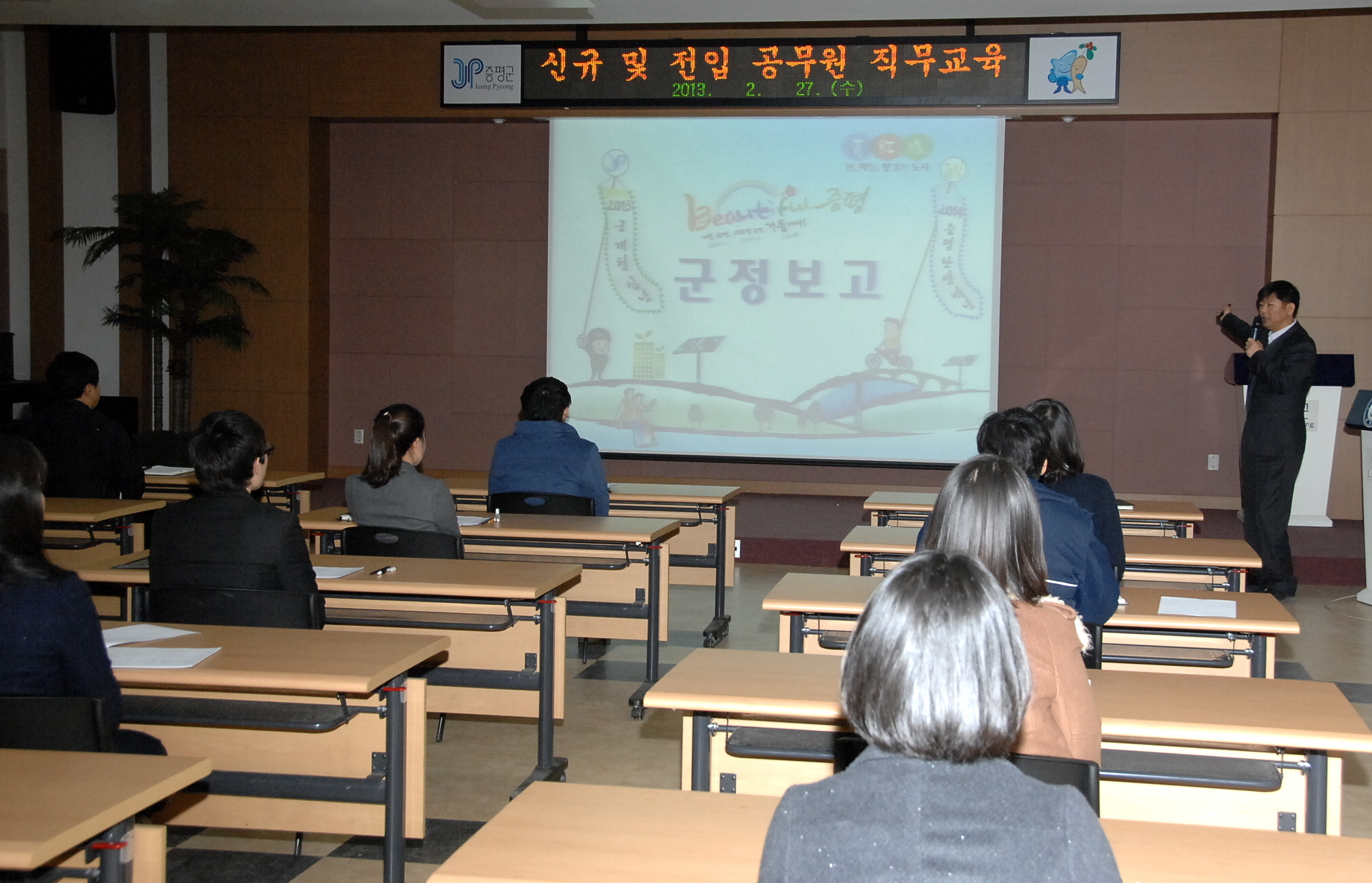 증평군은 27일 오전 9시부터 군청 대회의실에서 신규 및 전입직원 15명을 대상으로 공직생활 적응과 군정에 대한 이해를 돕기 위한 소양 및 직무교육을 실시했다. [보도자료실 참조]