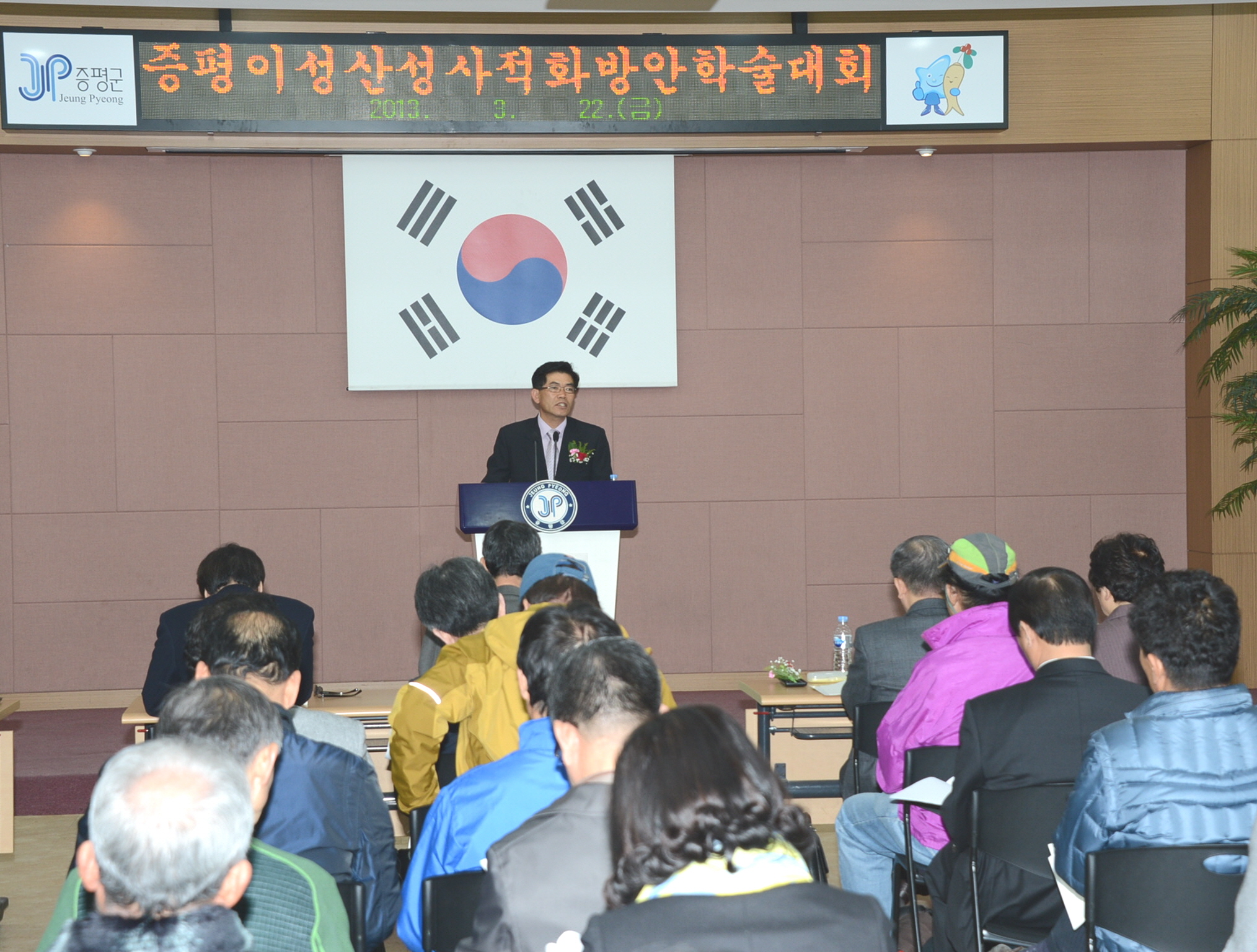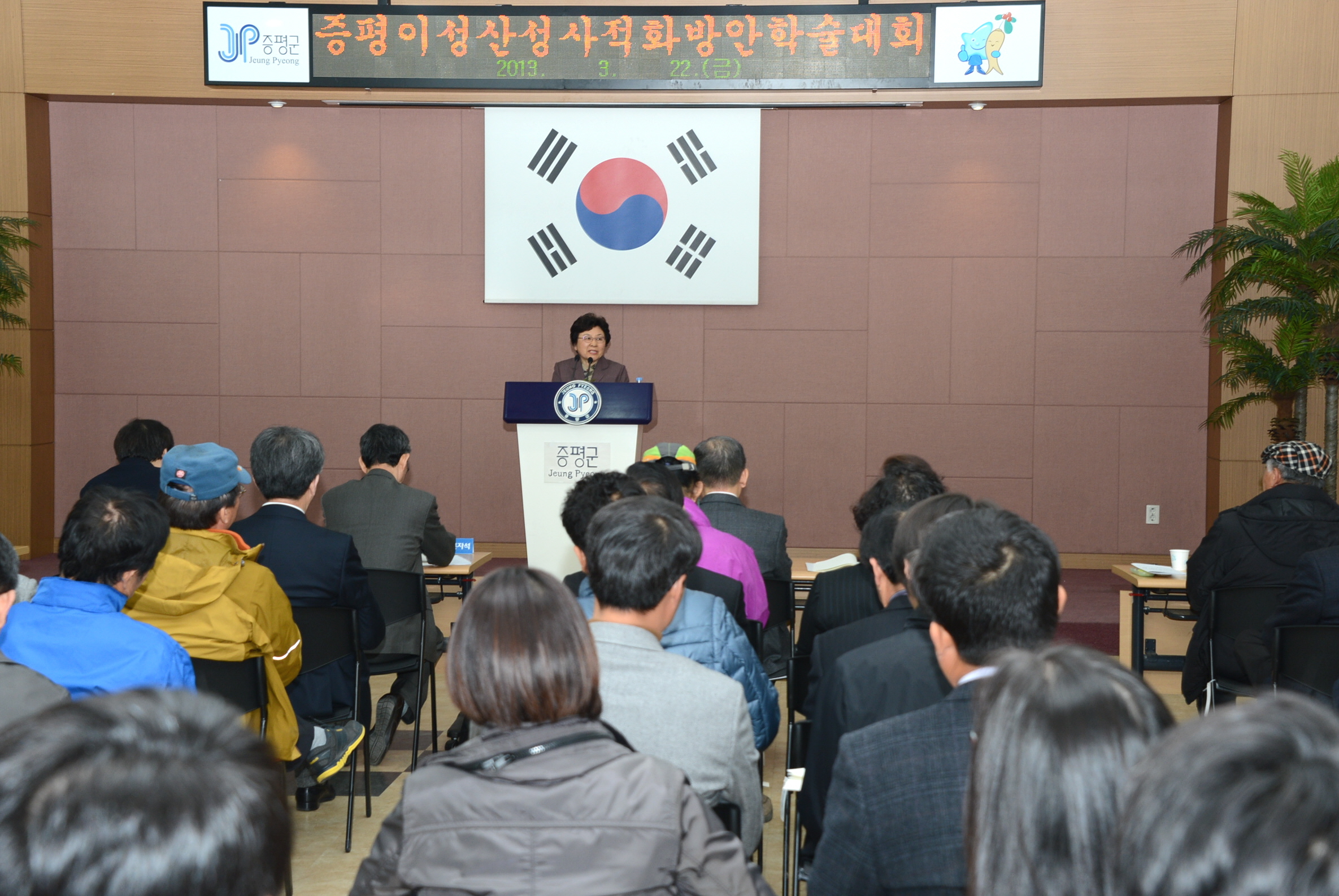 증평군은 22일 군청 대회의실에서 홍성열 증평군수, 박석규 군의장, 차용걸 한국성곽학회장, 학계관계자, 주민 등 80여명이 참석해 도안면 노암리 일대 증평 이성산성의 국가지정문화재 사적 지정 방안을 위한 학술대회를 개최했다. [보도자료실 참조]