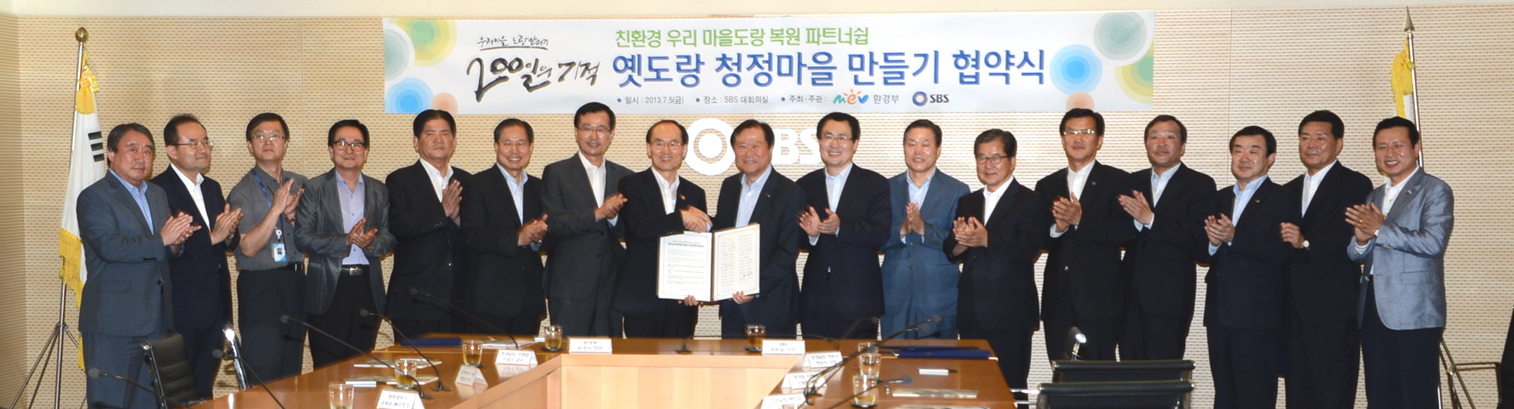 증평군은 5일 서울SBS 목동사옥에서 윤성규 환경부장관(사진 왼쪽), 우원길 SBS사장(사진 오른쪽)이 참석한 가운데 ‘옛도랑 살리기 사업’의 성공적인 추진을 위한 협약을 체결했다[보도자료실 참조]