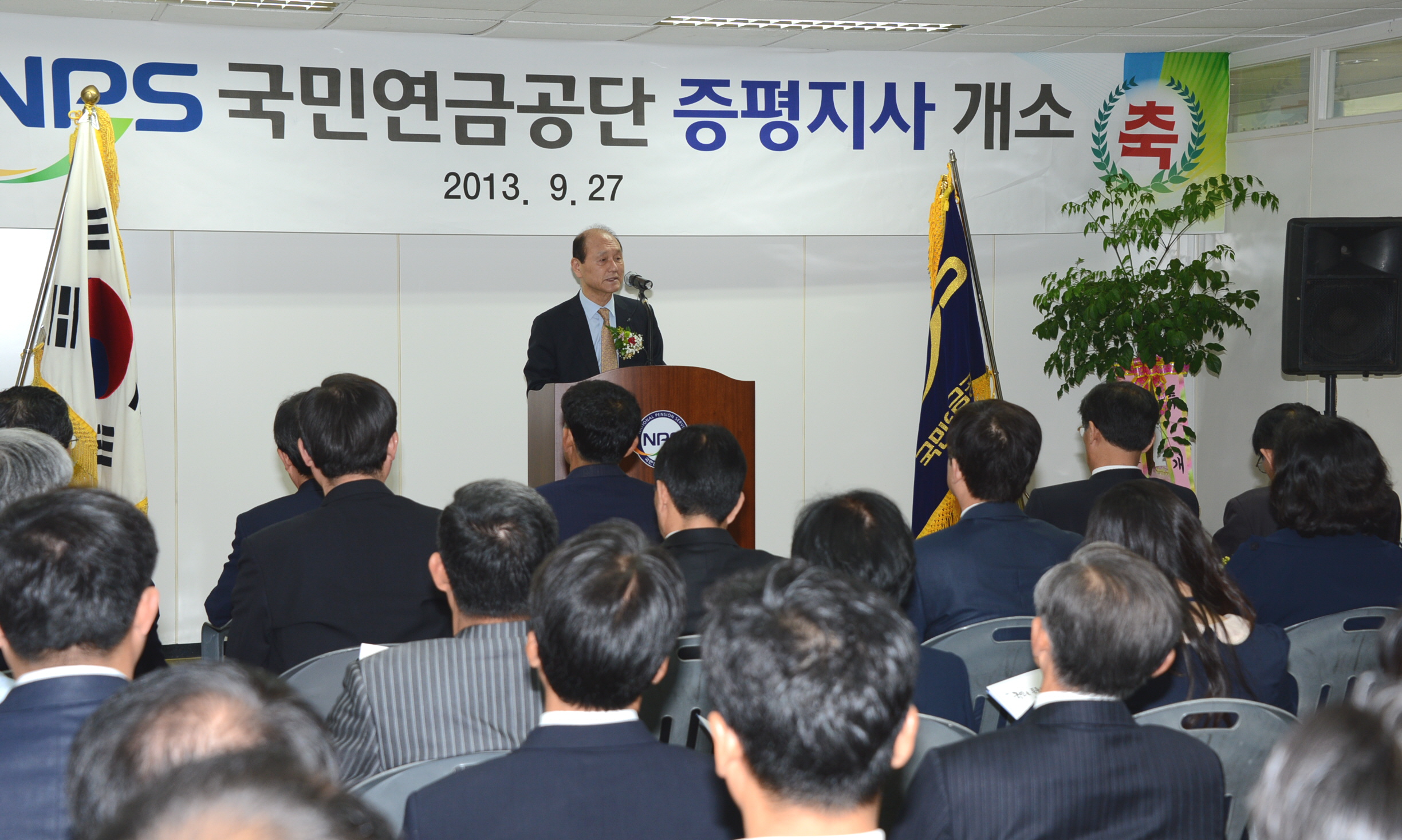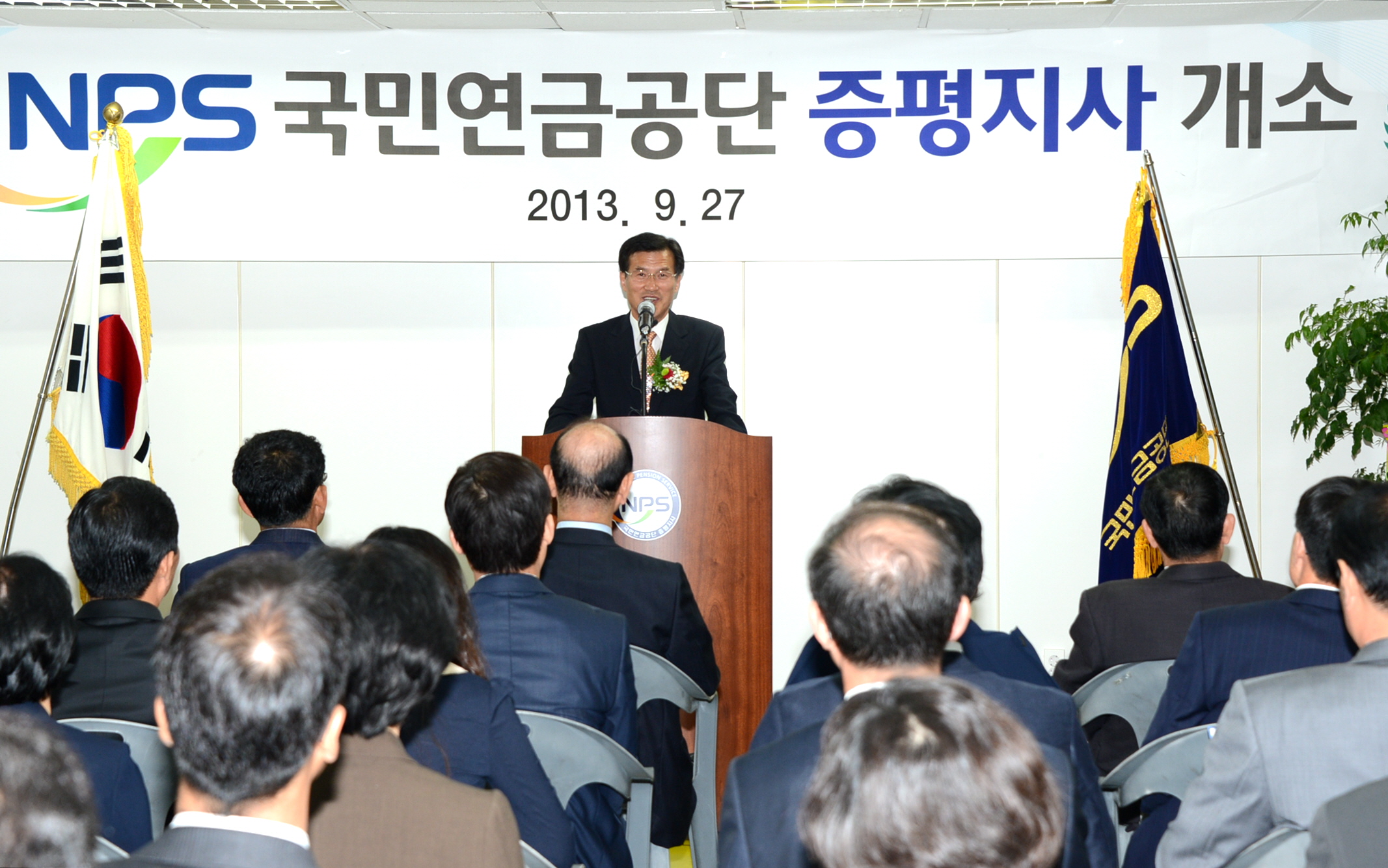 국민연금공단(이사장 최광)은 충북도내 증평, 음성, 진천, 괴산 등 중부 4개군 지역주민의 접근성을 높이고 보다 나은 서비스 제공을 위해 27일 증평군 증평읍 KT 1층에 “국민연금공단 증평지사”를 신설하고, 개소식을 가졌다.[보도자료실 참조]