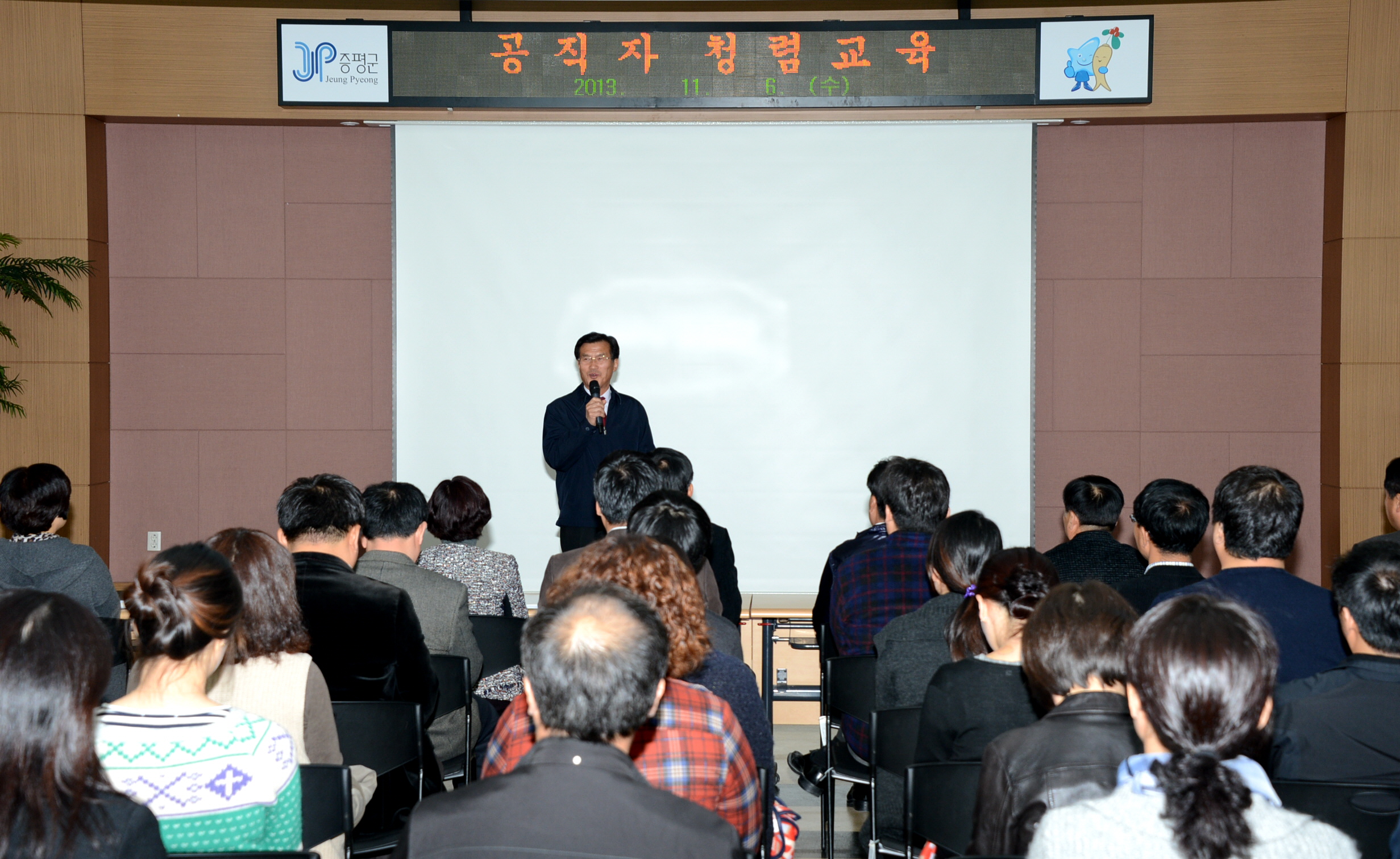 증평군은 6일 오후 2시 군청 대회의실에서 군 산하 공무원 150여명이 참석한 가운데 국민권익위원회 이연흥 고충처리국장을 초청하여 하반기 공직자 청렴교육을 실시했다. [보도자료실 참조]
