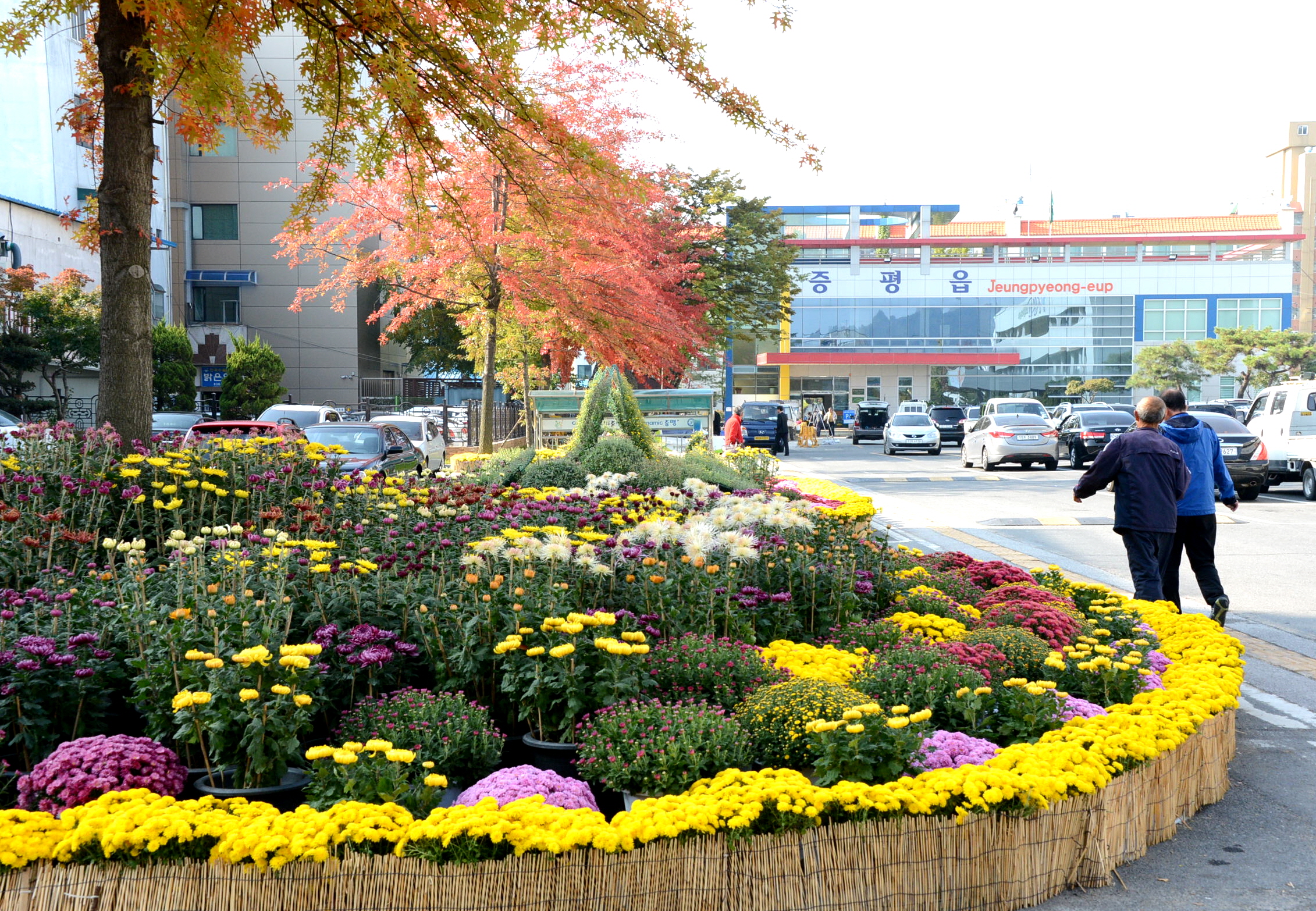 증평군이 아름다운 증평만들기 일환으로 국화꽃 7만여본을 식재하는 대규모 꽃길 조성사업을 추진해 아름다운 도시미관 조성으로 군 이미지 제고와 군민의 행복지수를 높이고 있다. [증평보도자료실 참조]