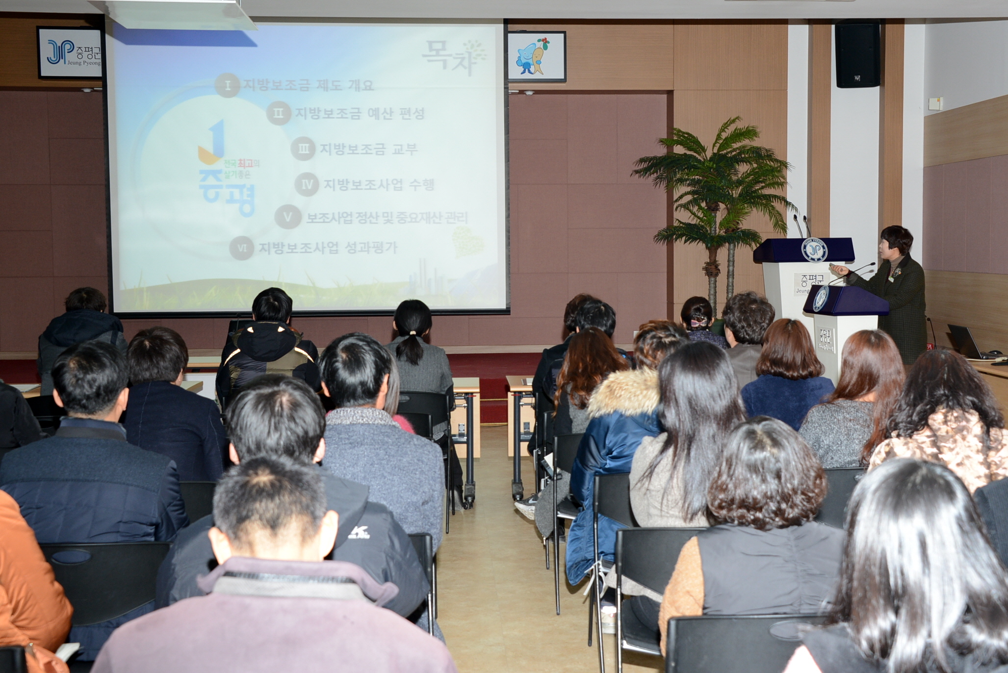 증평군은 13일 오전 10시 군청대회의실에서 2015년 지방보조금 사업의 원활한 추진과 보조금제도의 실효성 제고를 위해 지방보조금 업무 팀장 및 담당자 70여명이 참석한 가운데 지방보조금 관리기준 담당자 교육을 실시했다. [보도자료실 참조]