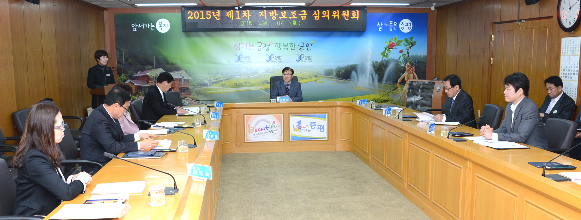 증평군은 7일 군청 소회의실에서 지방보조금심의위원 위촉 및 2015년도 제1회 추경의 지방보조금 예산편성, 공모사업의 보조사업 대상자 선정 등의 안건을 심의하는 ‘2015년 제1회 증평군 지방보조금심의위원회"를 열었다. [보도자료실 참조]