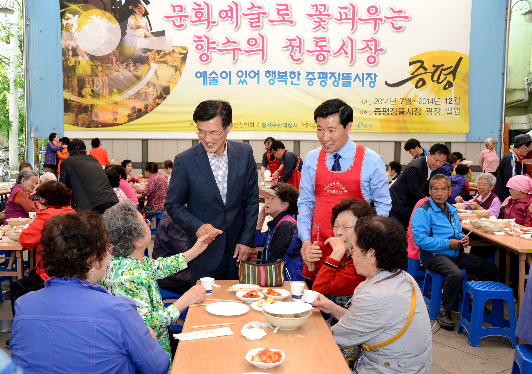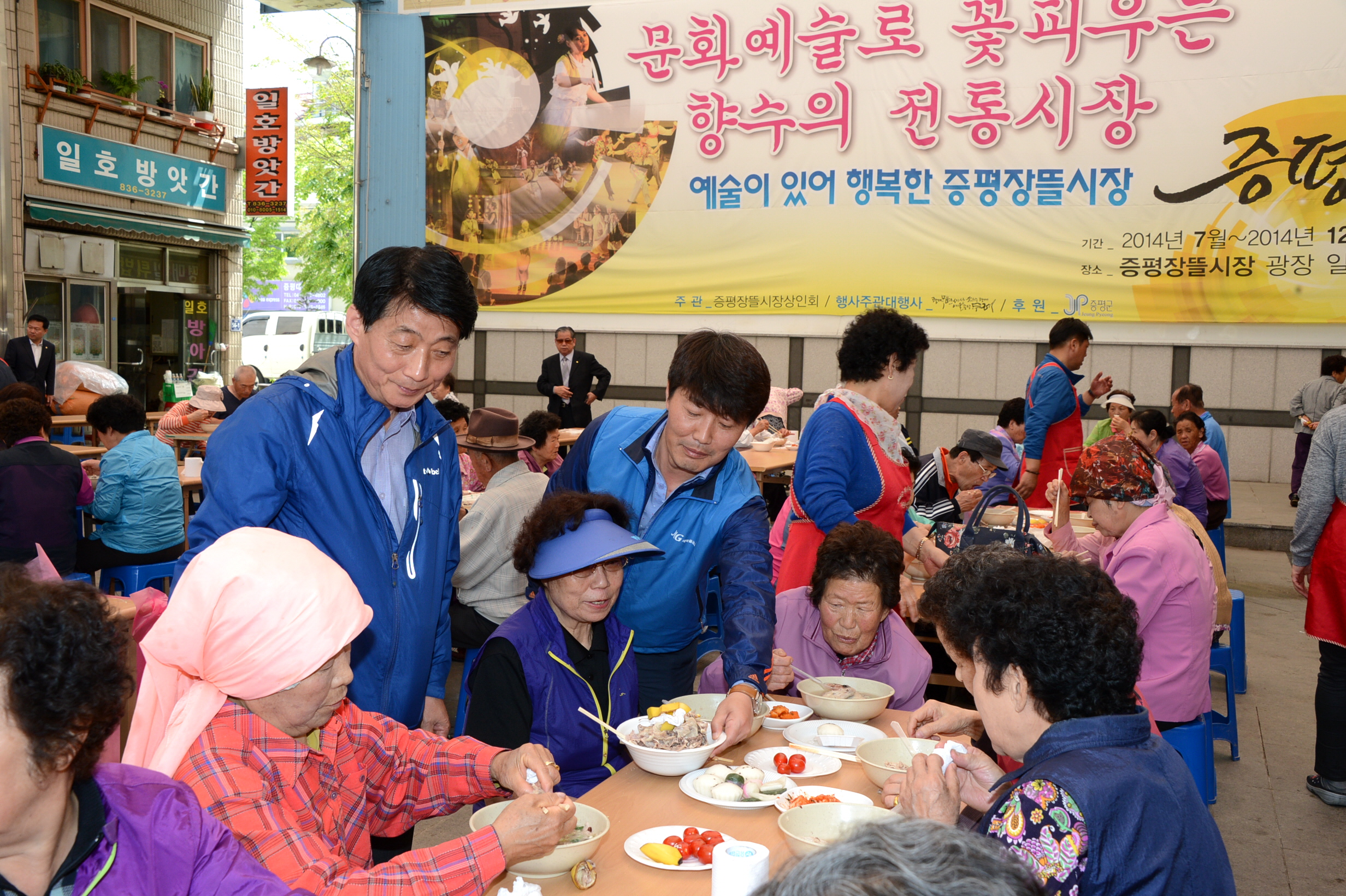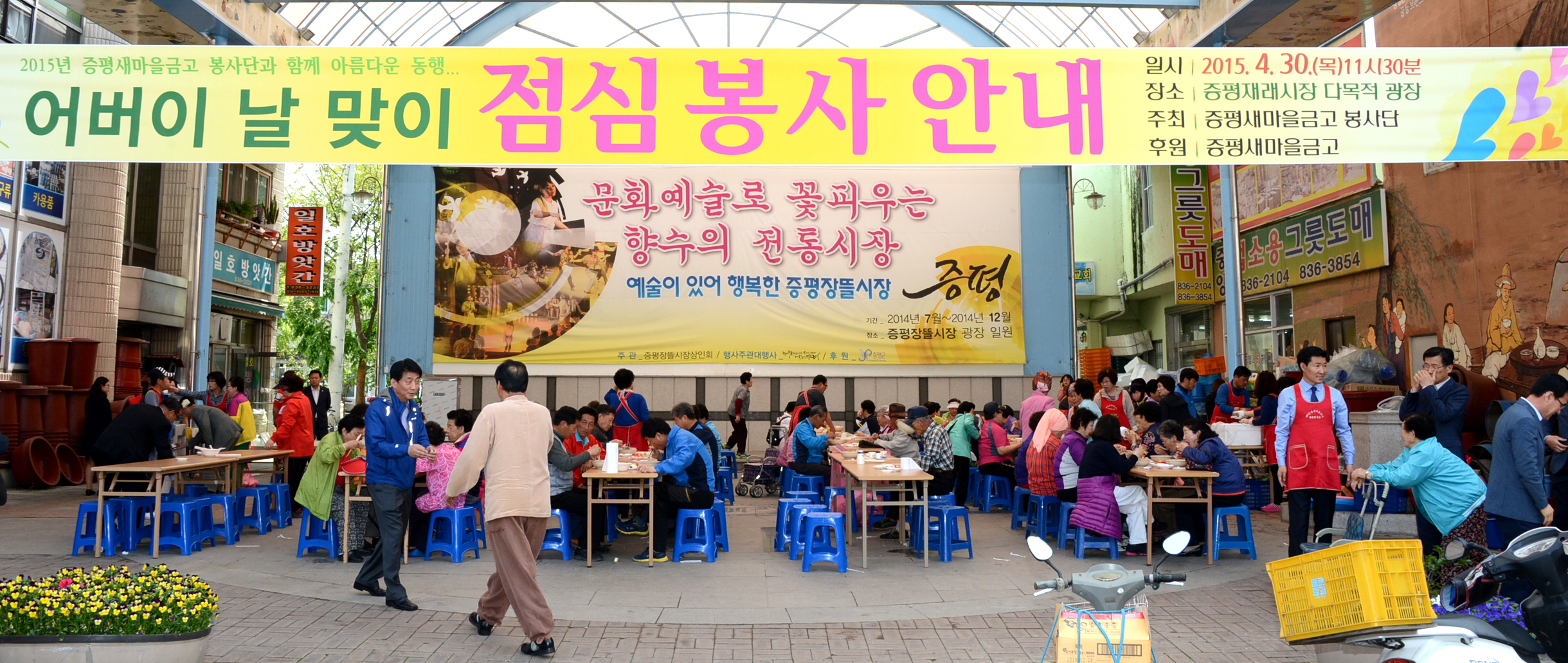 증평새마을금고 자원봉사단(단장 우종한)은 30일 오전 11시 30부터 13시30까지 증평장뜰시장 다목적광장에서 독거노인 및 어르신 400명을 초청해 ‘어버이날 맞이 점심 나누기’ 행사를 진행했다. [보도자료실 참조]