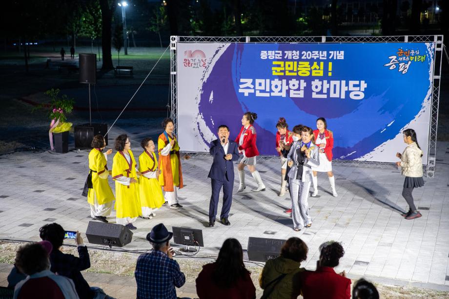 증평군이 지난 10일 저녁 7시 보강천 미루나무 숲에서 ‘증평군 개청 20주년 기념 주민화합 한마당’을 주제로 버스킹 공연을 개최했다.