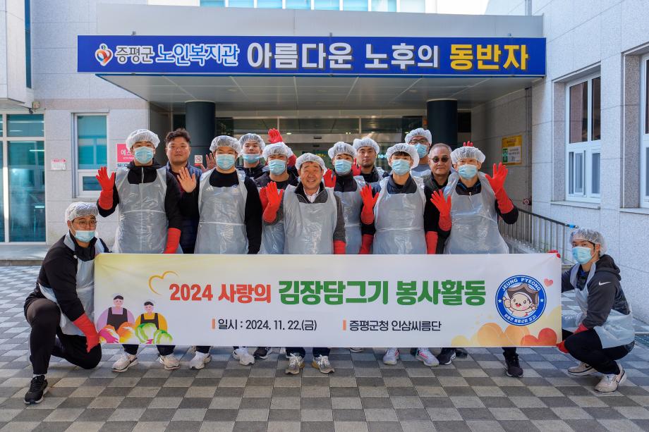 충북 증평군은 22일 증평군노인복지관에서 진행된 김장 담그기 행사에 증평군청 인삼씨름단(감독 연승철)이 참여해 지역사회와 온정을 나눴다고 밝혔다.