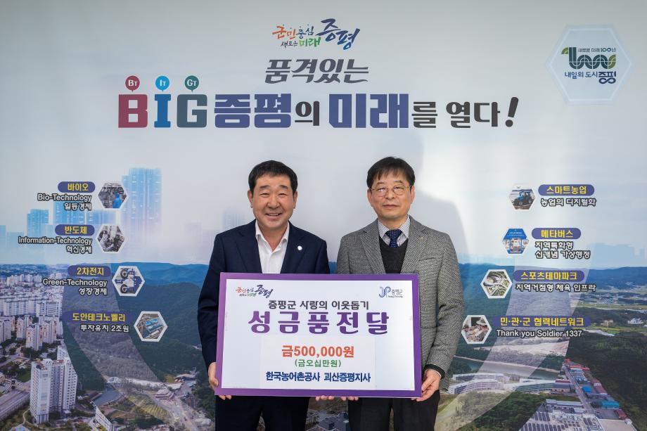 한국농어촌공사 충북지역본부ㆍ괴산증평지사, 증평군에 이웃돕기 성금 150만원 기탁
