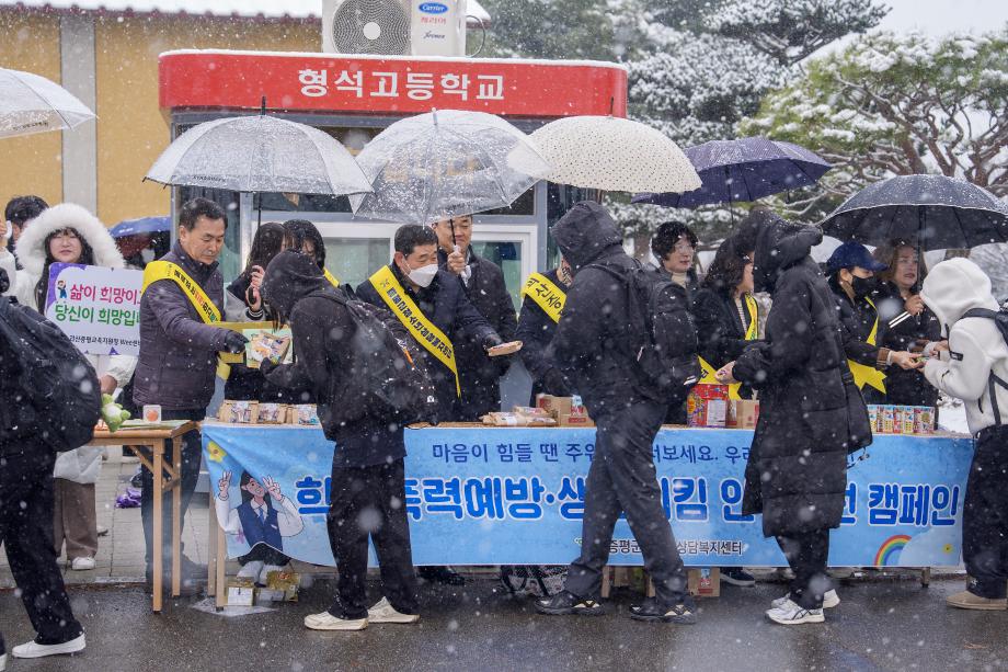 증평군청소년상담복지센터(센터장 윤은미)가 18일 형석고등학교 정문 앞에서 학교폭력예방·생명지킴 등굣길 캠페인을 펼쳤다.