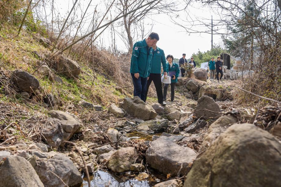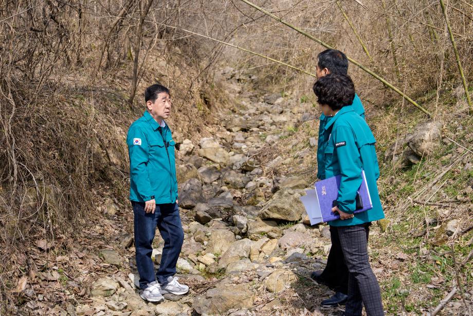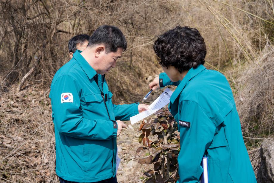 이재영 증평군수가 24일 해빙기 안전사고 예방을 위해 지역 내 해빙기 취약시설에 대한 안전관리 실태를 점검했다.