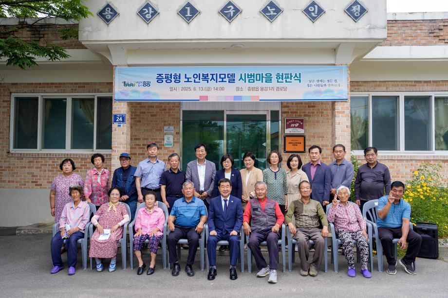 충북 증평군이 초고령사회에 대응해 노인의 삶의 질을 높이기 위한 돌봄 정책을 강화하는 가운데, 13일 ‘증평형 노인복지모델’의 시범마을 현판식이 증평읍 용강1리에서 열렸다.