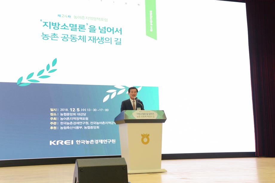 군수협의회와 한국농촌경제연구원이 공동으로 주관하고 농림축산식품부와 농협중앙회가 후원한 이번 포럼은 지방 소멸의 위기의식을 넘어 향후 농촌 지자체의 지역개발 방향을 모색하기 위해‘지방소멸론을 넘어서: 농촌 공동체 재생의 길’이란 주제로 진행됐다.