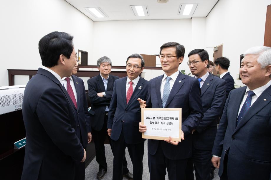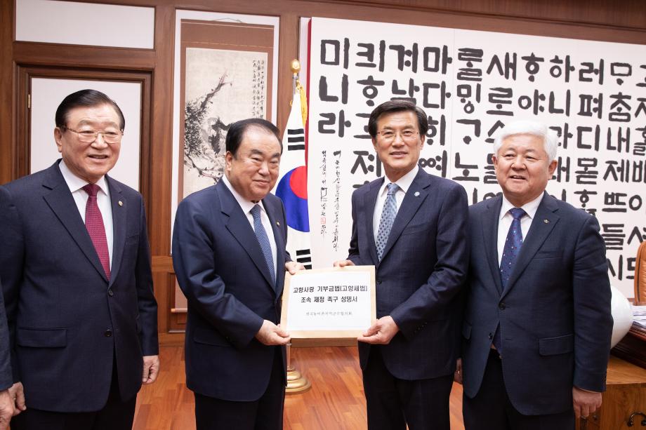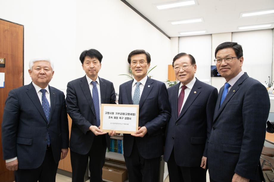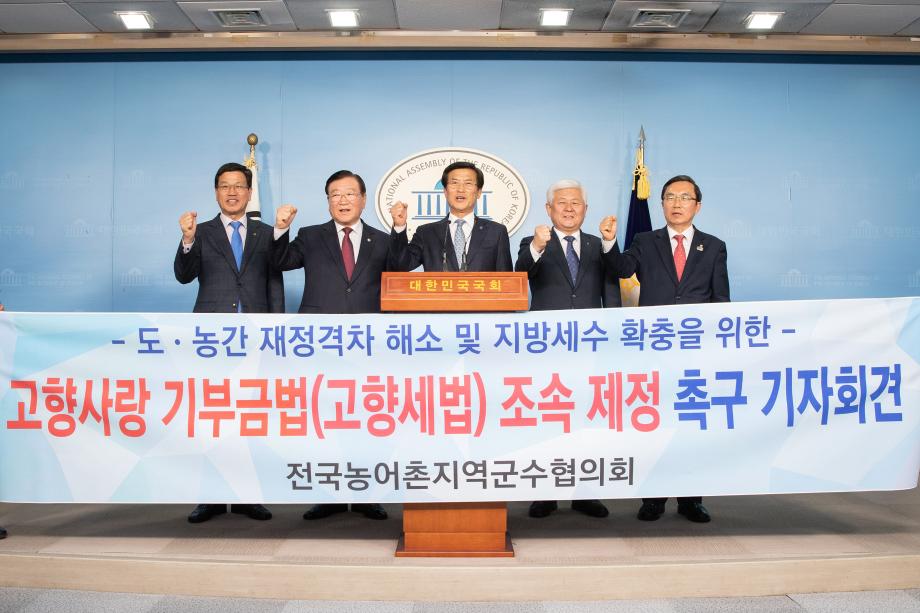 “국회와 정부는 농어촌 지역의 위기를 더 이상 외면하지 말고 도․농간 재정격차 해소 및 지방세수 확충을 위한 고향사랑 기부금법 통과에 적극 나설 것을 다시 한번 강력히 요청한다”
