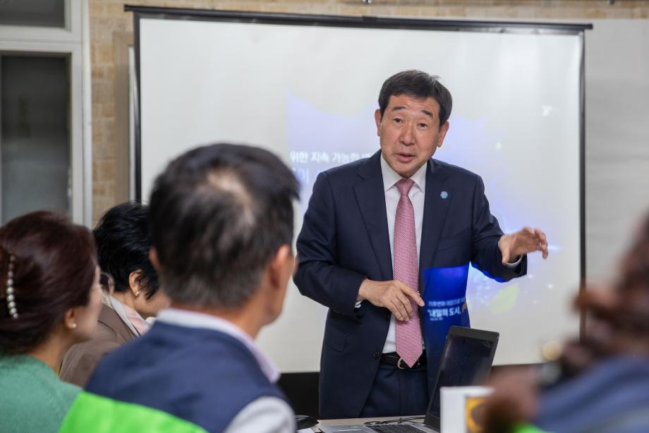 이재영 군수가 지난 26일 자원순환시민센터를 방문해 탄소중립과 관련한 주제로 주민들에게 특강을 펼쳤다.