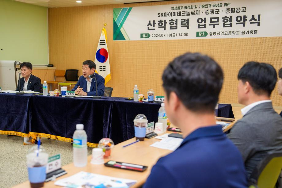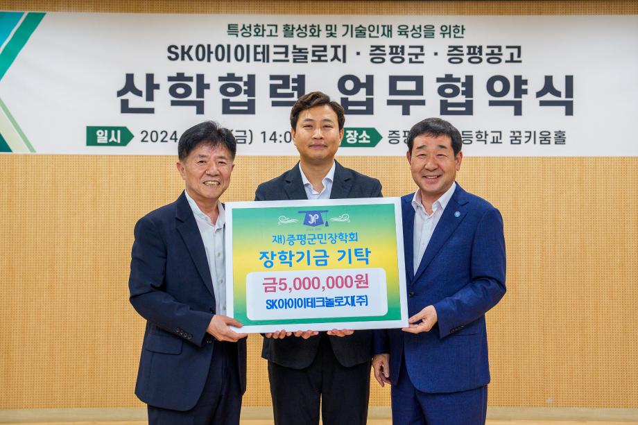 증평군, SK아이이테크놀로지(주)-증평공고와 산학협력 업무협약 체결