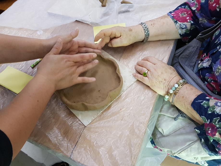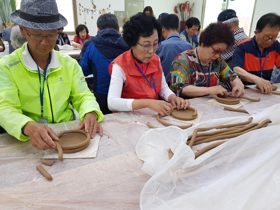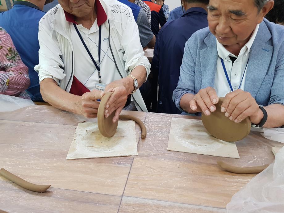 도자기 흙을 이용한 삼족기 체험을 진행하는 모습과