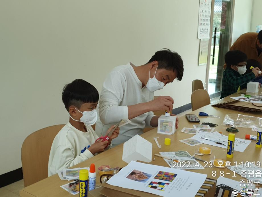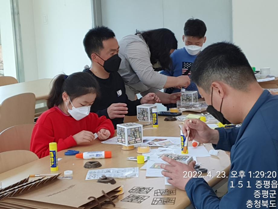 - 내용 : 우리 전통문양을 알아보고 한지 무드등 만들기, 사자성어를 한지에 적어보기
