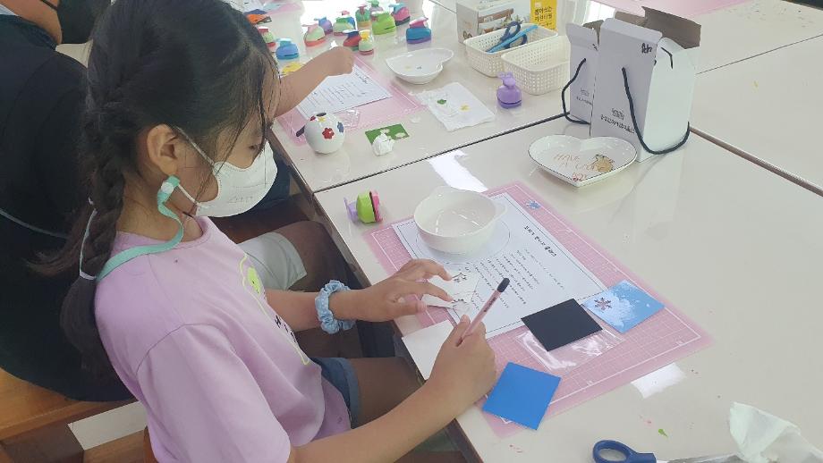 - 내용 : 우리나라 전통 오방간색을 알아보고, 전사지로 나만의 그릇 꾸며보기(선물포장박스 증정)