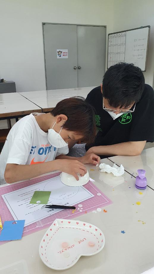 - 내용 : 우리나라 전통 오방간색을 알아보고, 전사지로 나만의 그릇 꾸며보기(선물포장박스 증정)