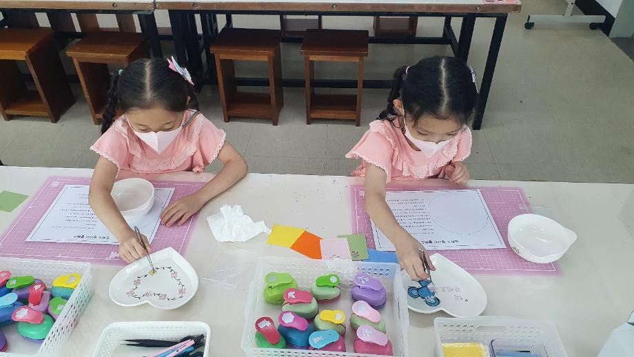 - 내용 : 우리나라 전통 오방간색을 알아보고, 전사지로 나만의 그릇 꾸며보기(선물포장박스 증정)