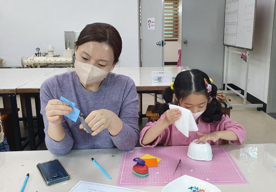 - 내용 : 우리나라 전통 오방간색을 알아보고, 전사지로 나만의 그릇 꾸며보기(선물포장박스 증정)