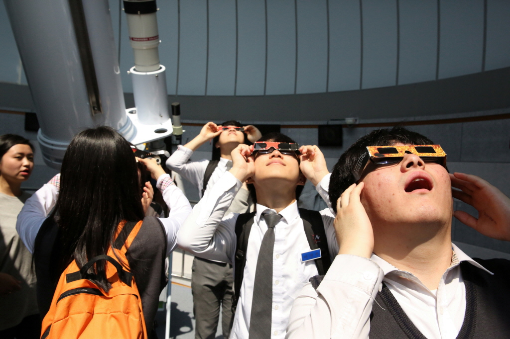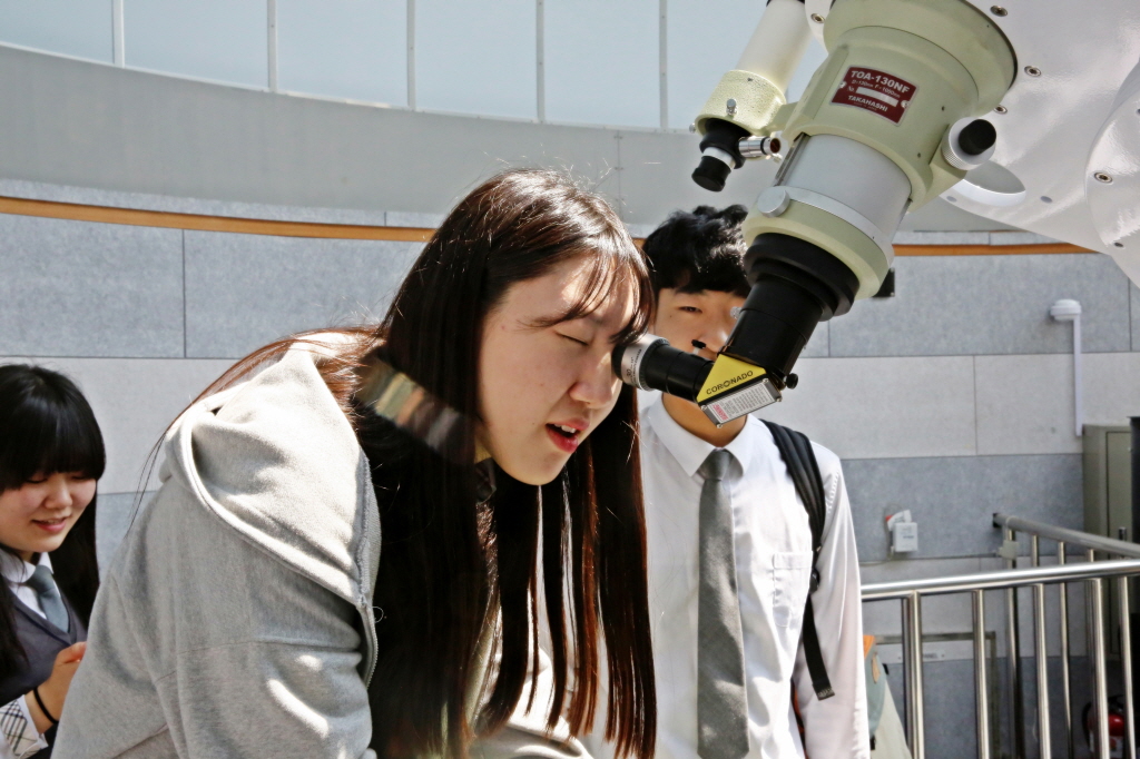 천문대에서 낮에 태양관측을 진행하고 있습니다.