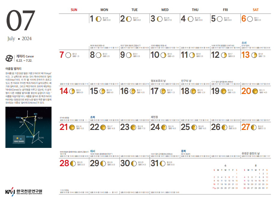 2024년 7월 천체관측대상과 천체현상입니다.